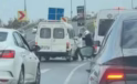 Şoförüyle tartıştıkları minibüse sopa ve kaskla saldırdılar
